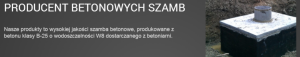 Nasze produkty to wysokiej jakości szamba betonowe, produkowane z betonu klasy B-25 o wodoszczelności W8 dostarczanego z betoniarni.